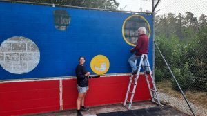 Deze zomer hebben de oefenmuur en de tafeltennistafel weer een nieuwe laag verf gekregen, waardoor het er weer fris uitziet. Bedankt vrijwilligers voor jullie inzet!